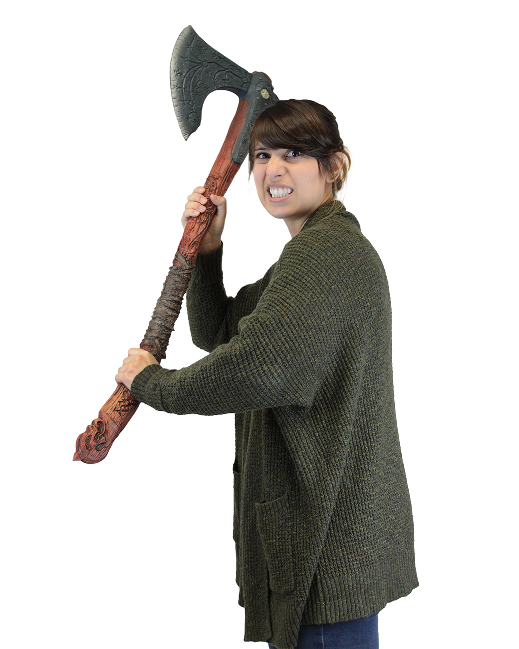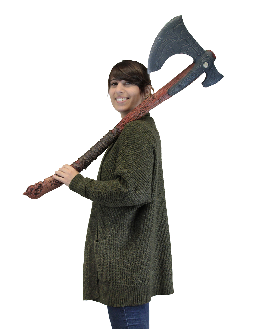 The foam replica axe measures 36 inches long and is brought to life with detailed paint deco.