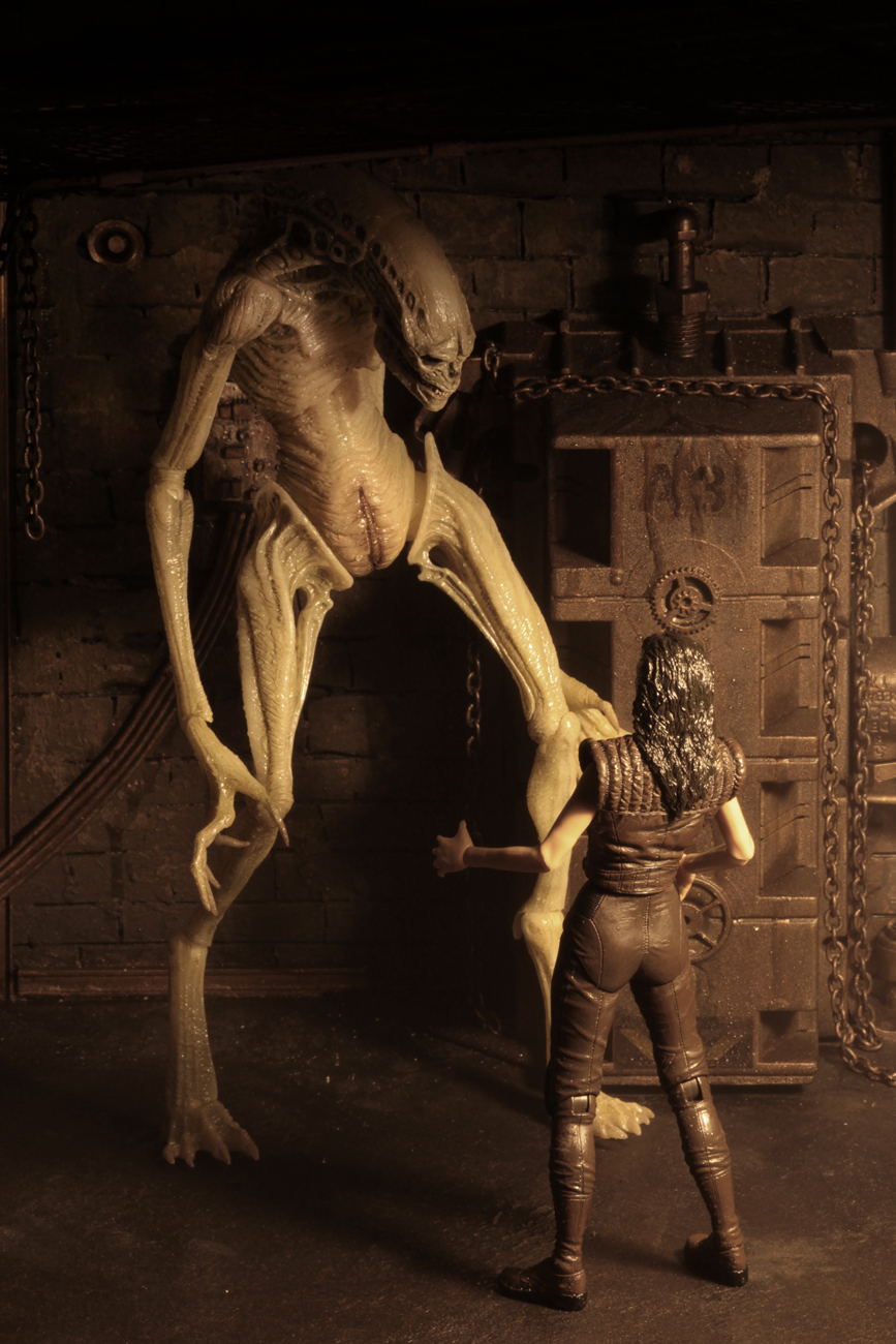 Contaminated with Ripley’s DNA, the Queen gives birth to a grotesque human/alien hybrid called the “Newborn.” The Newborn action figure stands approximately 11” tall and includes a display stand. The Newborn features a screen-accurate sculpt and almost 30 points of articulation.