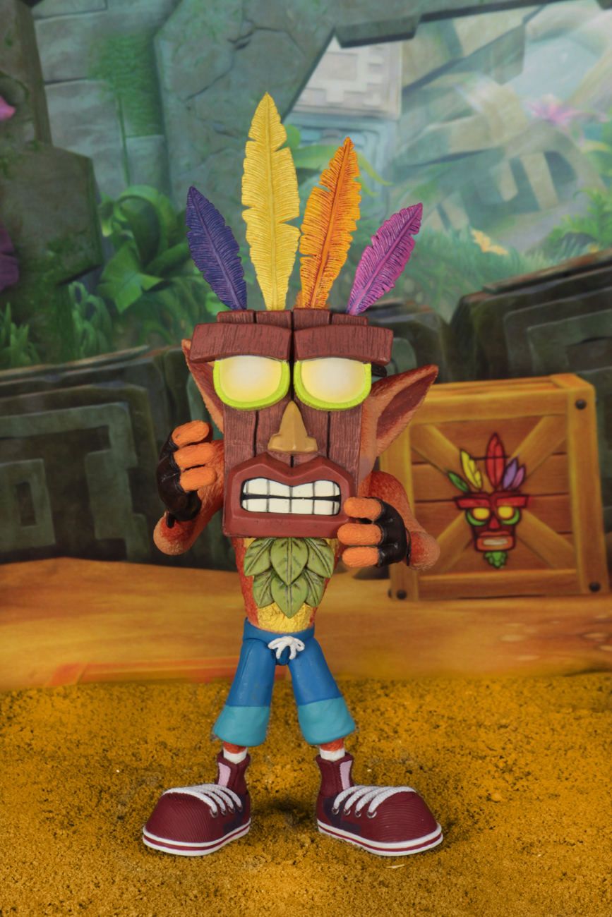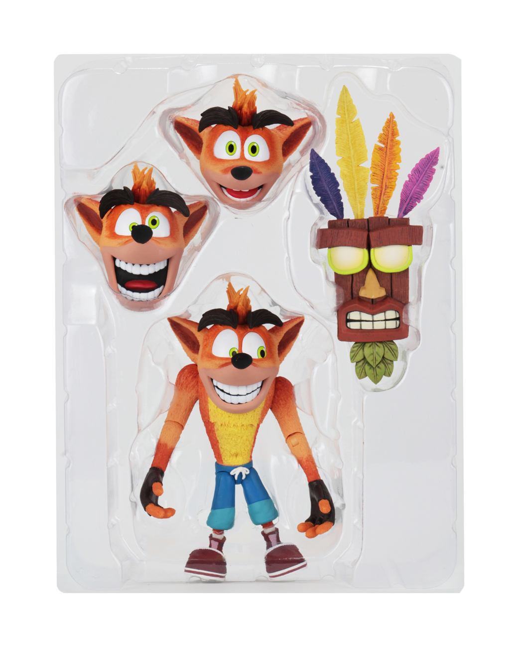 The loveable and only slightly crazy bandicoot comes with an Aku Aku mask and 3 new interchangeable head sculpts, all with different expressions and articulated eyebrows. Crash stands 5.5 inches tall, has plenty of articulation for maximum wumpage and looks like he leapt right out of the game!