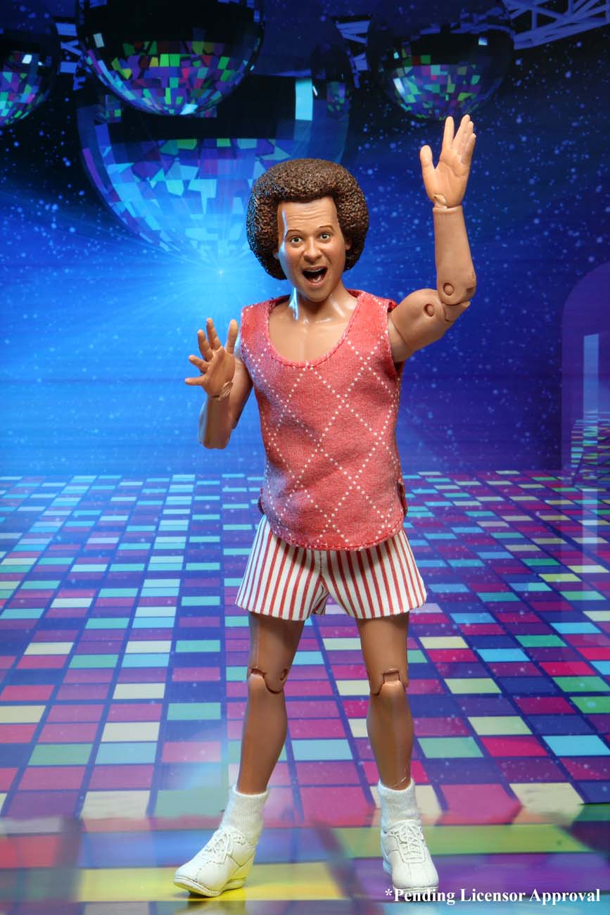 Known for the Sweatin’ to the Oldies workout videos, Richard Simmons is here to give your action figures a workout by joining NECA’s 8″ Clothed line. Sporting real fabric athletic shorts and a tank top, the famous aerobics instructor stands approximately 8″ tall and comes with interchangeable heads.