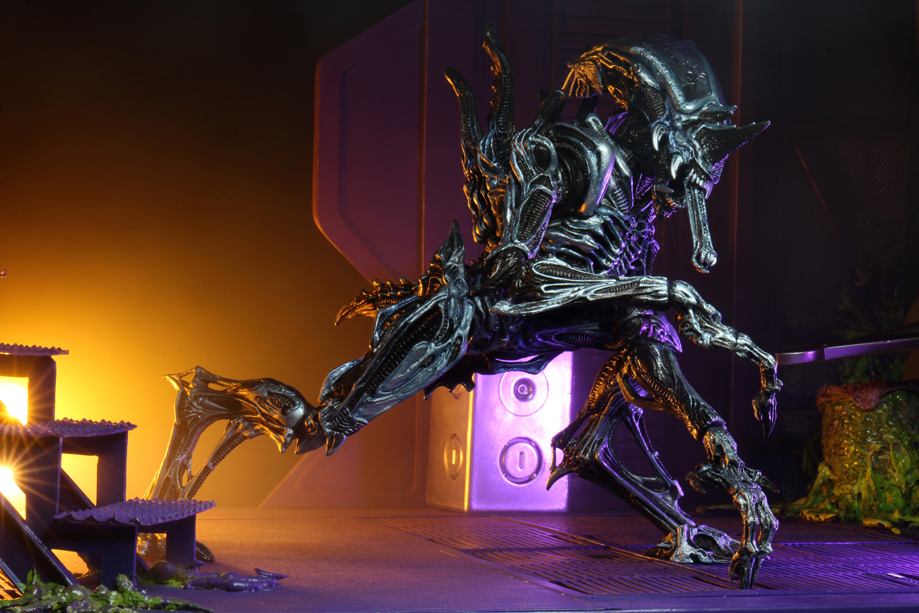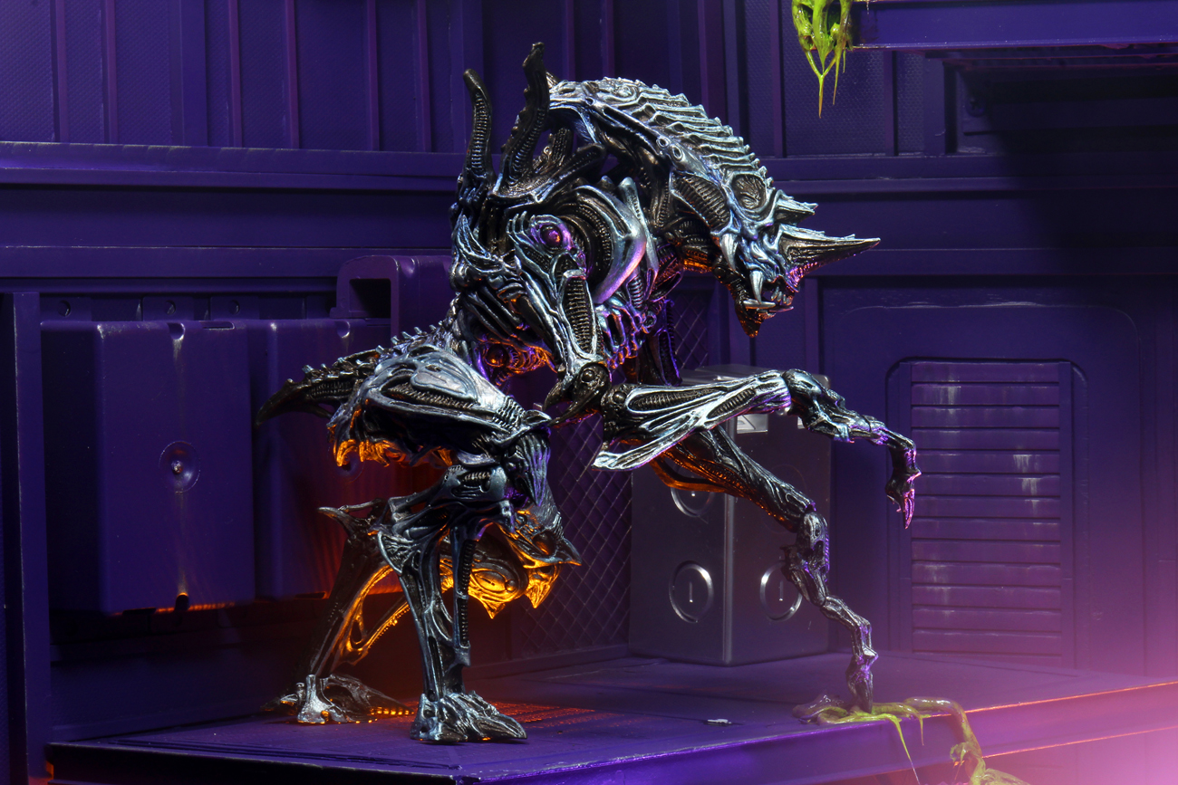 The Rhino Alien is back and better than ever with brand new paint deco based on the variant release. Our team took inspiration from Kenner’s classic design and transformed it into an all-new modern behemoth featuring all of today’s detail and articulation. Rhino Alien measures approximately 10” and has a massive ramming horn for attacking its unlucky prey.