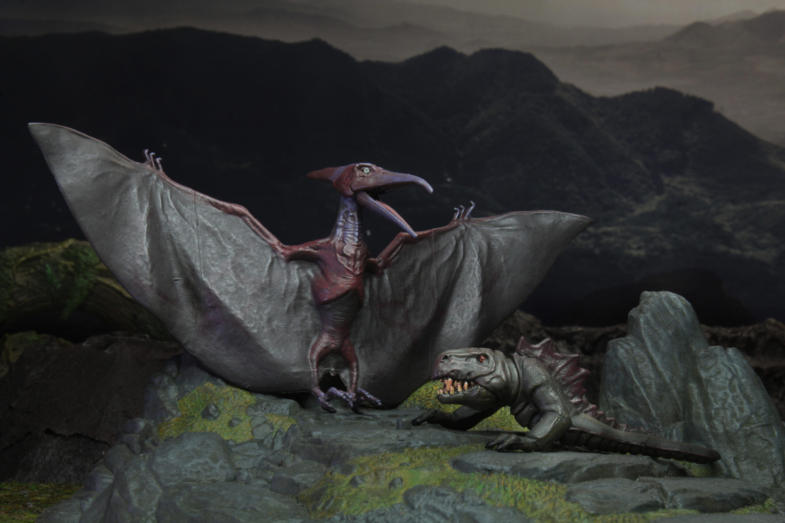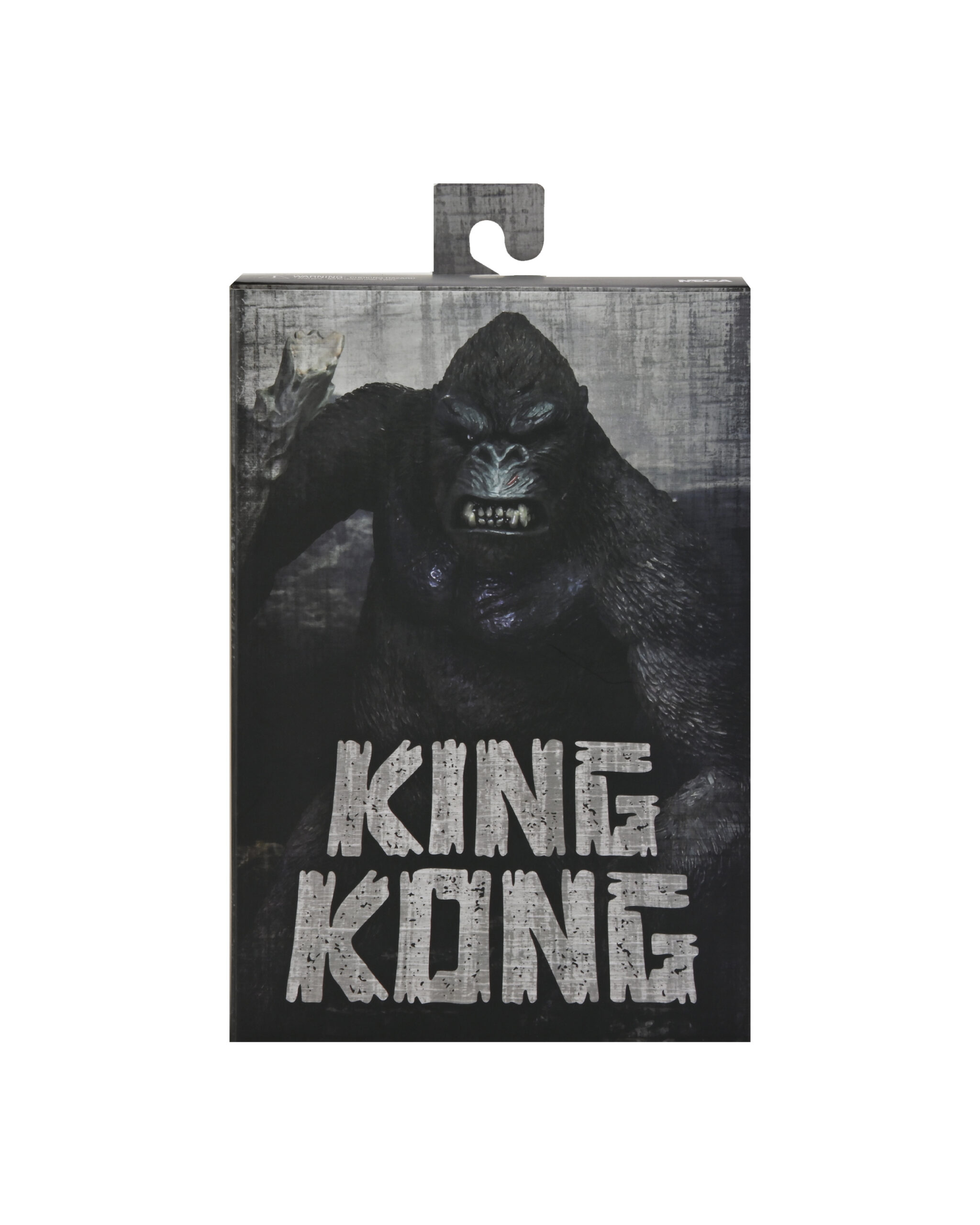 NECA proudly presents the Ultimate King Kong! He stands 8″ tall with super detailed hair and battle wounds across the body and head sculpts, received from defending his island. This massive figure has over 30 points of articulation. The figure includes two brand-new interchangeable heads (one with jaw articulation), 3 pairs of interchangeable hands, a pit monster, pteranodon, and tree trunk accessory. Display-friendly window box packaging with opening front flap.