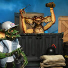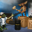 These two 7″ scale, fully articulated Gremlins figures (approximately 6″ tall) are examples of what happens when you get a Mogwai wet. From the sequel movie Gremlins 2: The New Batch, they’re fully equipped to wreak havoc, with barrel, mallet, bomb, can, dynamite, dynamite plunger, interchangeable hands, hard hat, and fabric tee and jean vest.