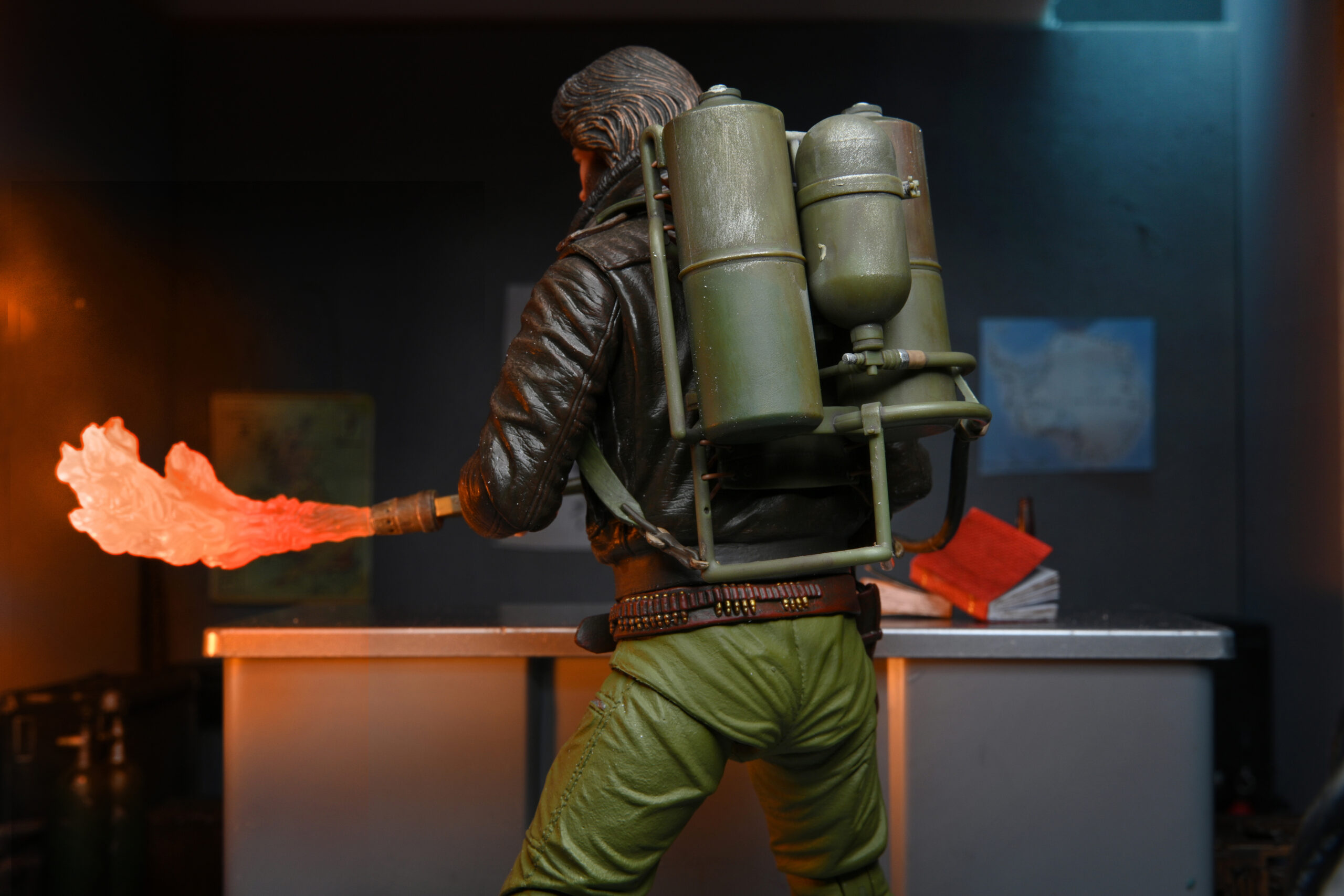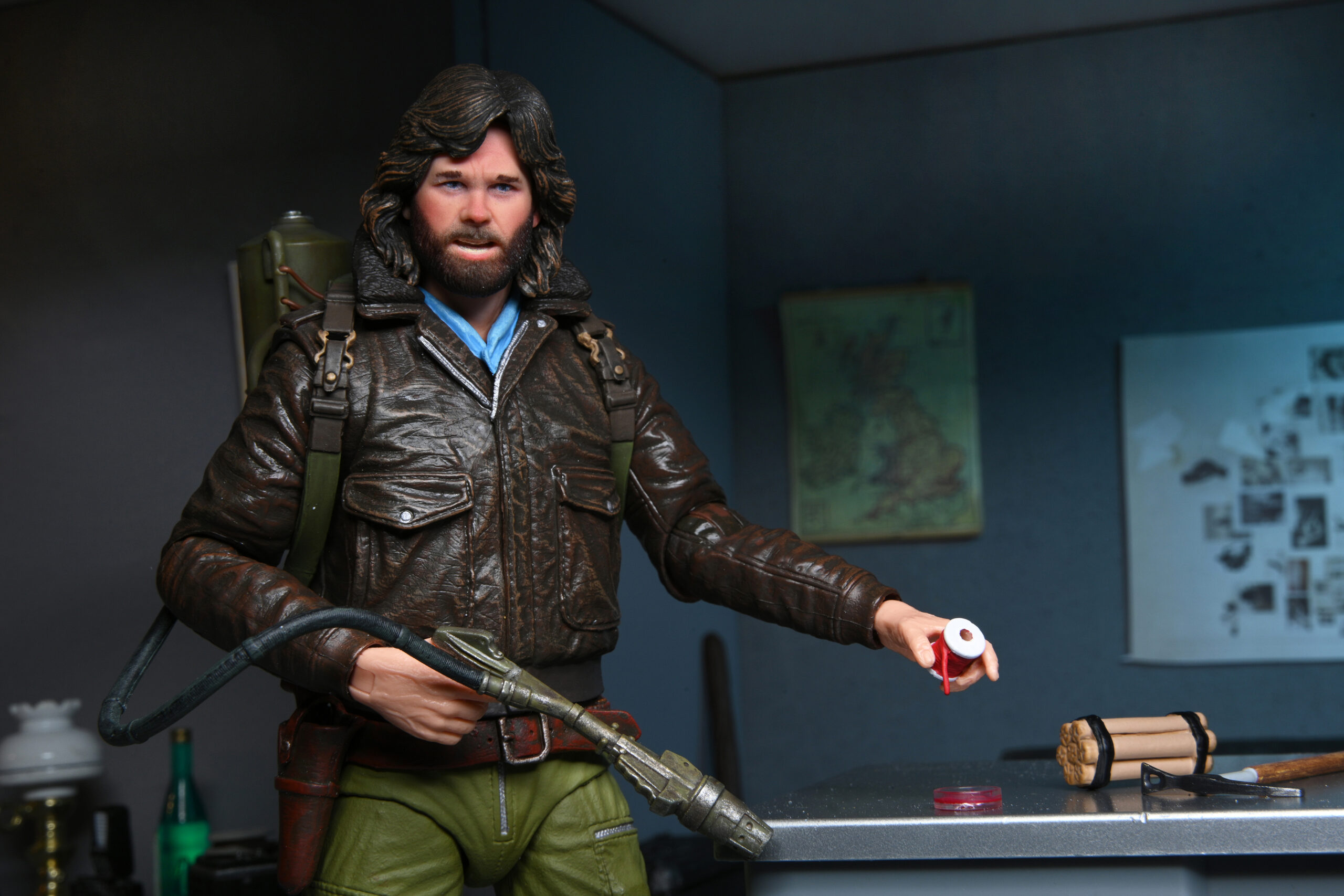 From The Thing, John Carpenter’s acclaimed slow-build horror film classic! Macready is a member of a 12-man research team which finds something that’s been waiting for over 100,000 years in the Antarctic circle… something with the ability to become one of them. Featuring the official likeness of Kurt Russell, Ultimate Station Survival Macready stands approximately 7 inches tall and is fully articulated. Includes interchangeable heads and hands, flamethrower, fire effect, dynamite bundle, wire spool, petri dish, blood effect, revolver, and ice axe.