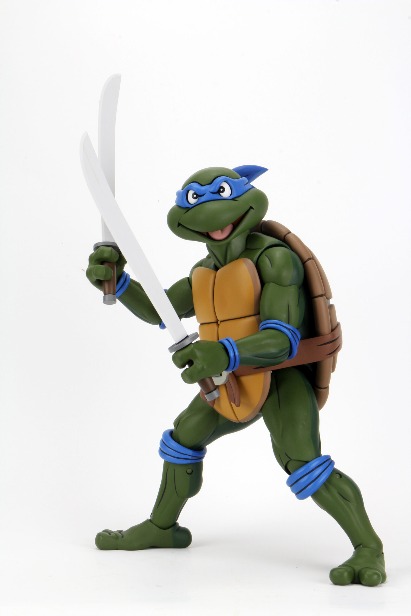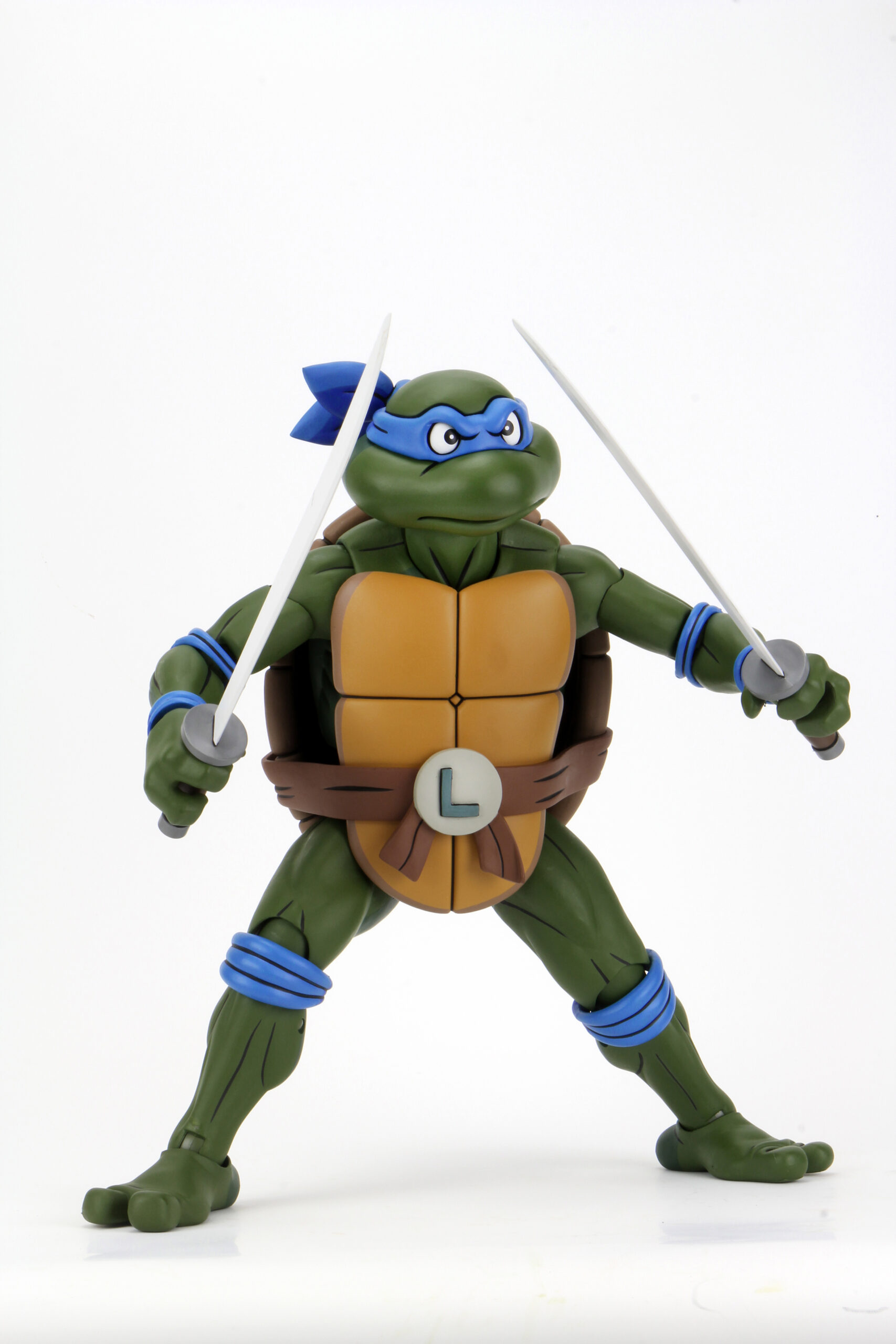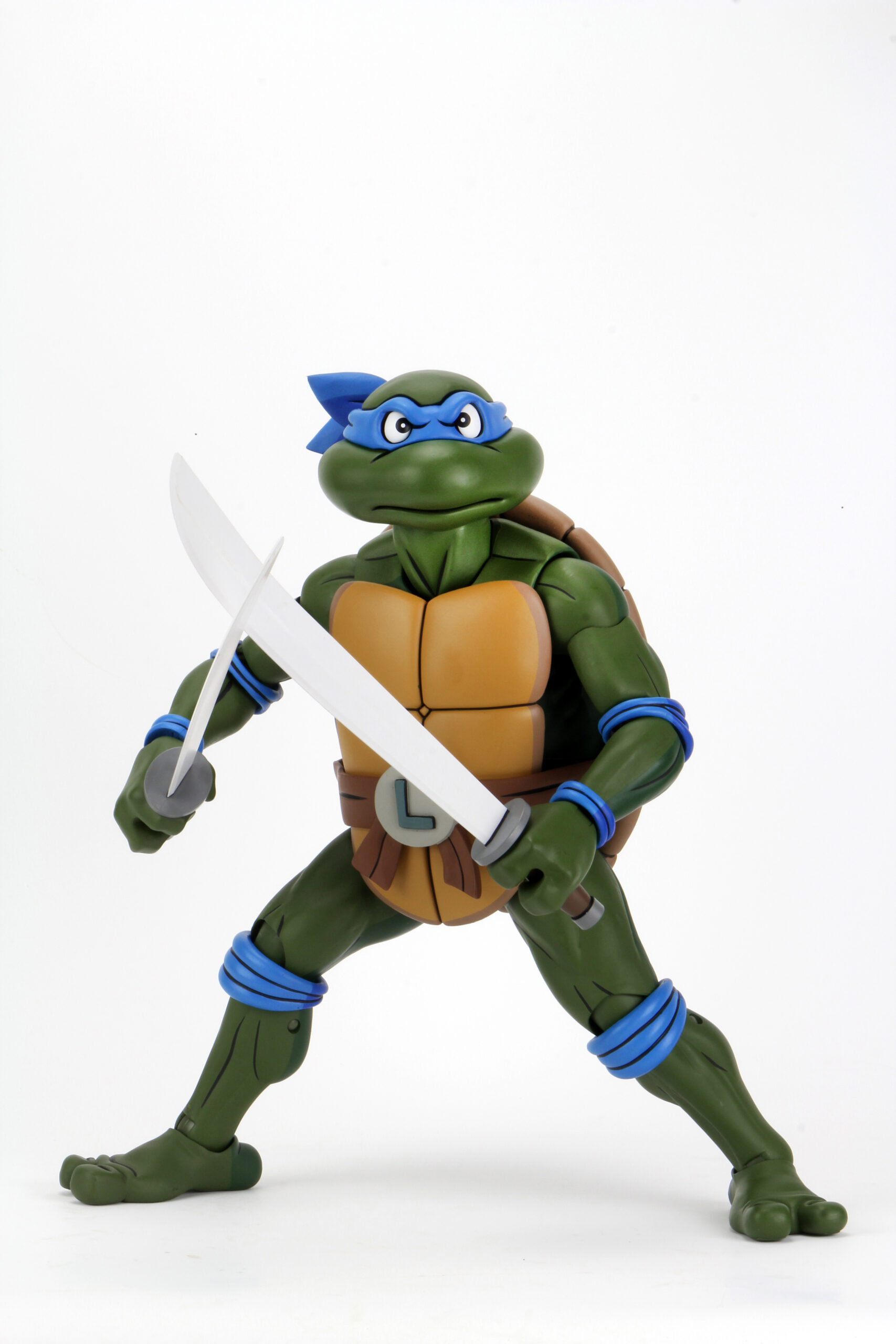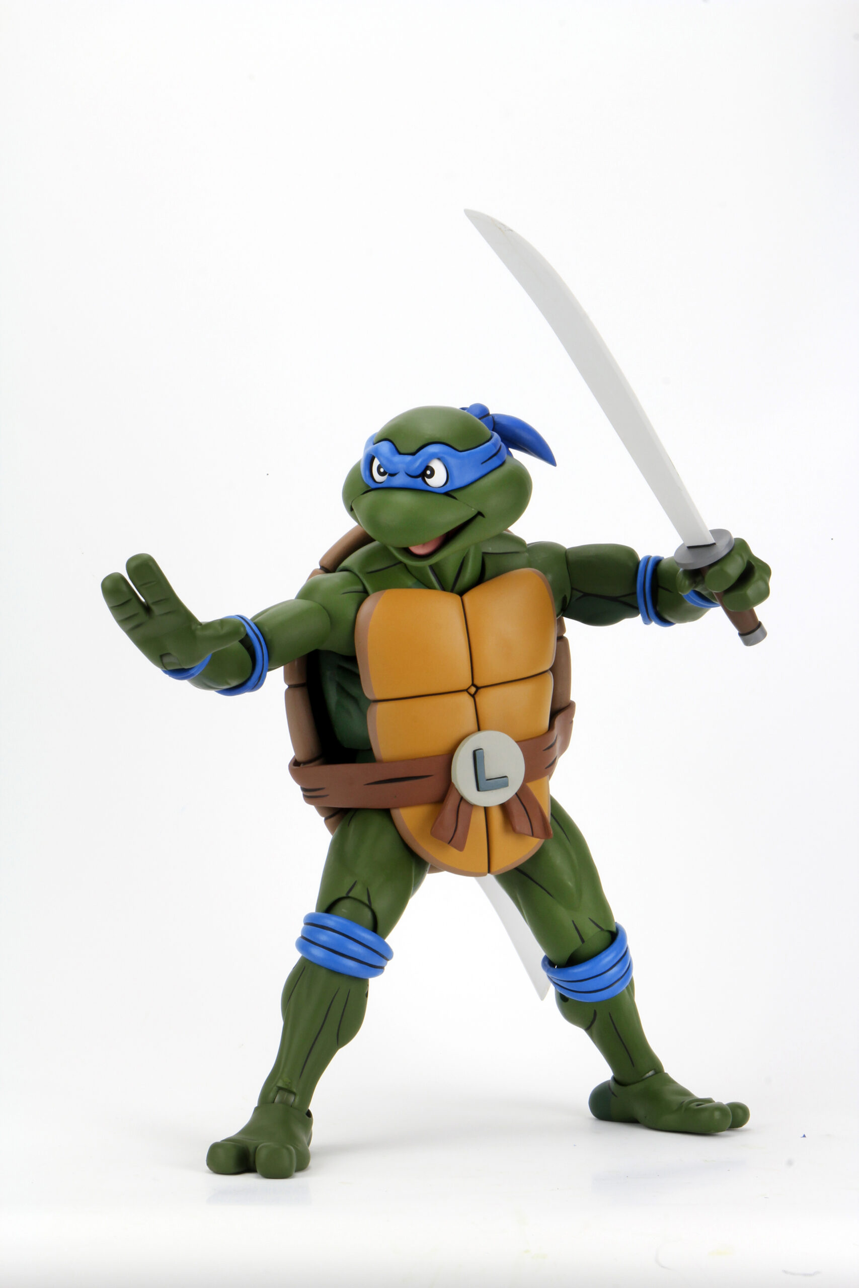 Cowabunga, dudes! NECA is proud to announce the third 1/4 scale figure from the classic 1987 Teenage Mutant Ninja Turtles cartoon! Giant Size Leonardo stands 15 inches tall with nearly 30 points of articulation and comes with four interchangeable top and bottom face plates to portray a variety of expressions. These face plates are interchangeable across all four Turtles in the Giant Size line! Collect them all and create even more expressions for each Turtle! Rounding out his accessories are katanas, extra hands, slices of pizza, and a Turtle Communicator that opens and closes!