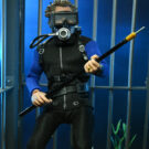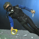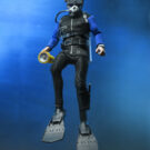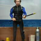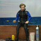 Based on the shark cage scenes, standing at 8″ tall, the young oceanographer is equipped with screen-accurate accessories (flippers, spear, underwater light, knife, and oxygen tank) as well as swappable heads. Window box packaging.