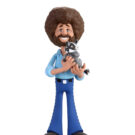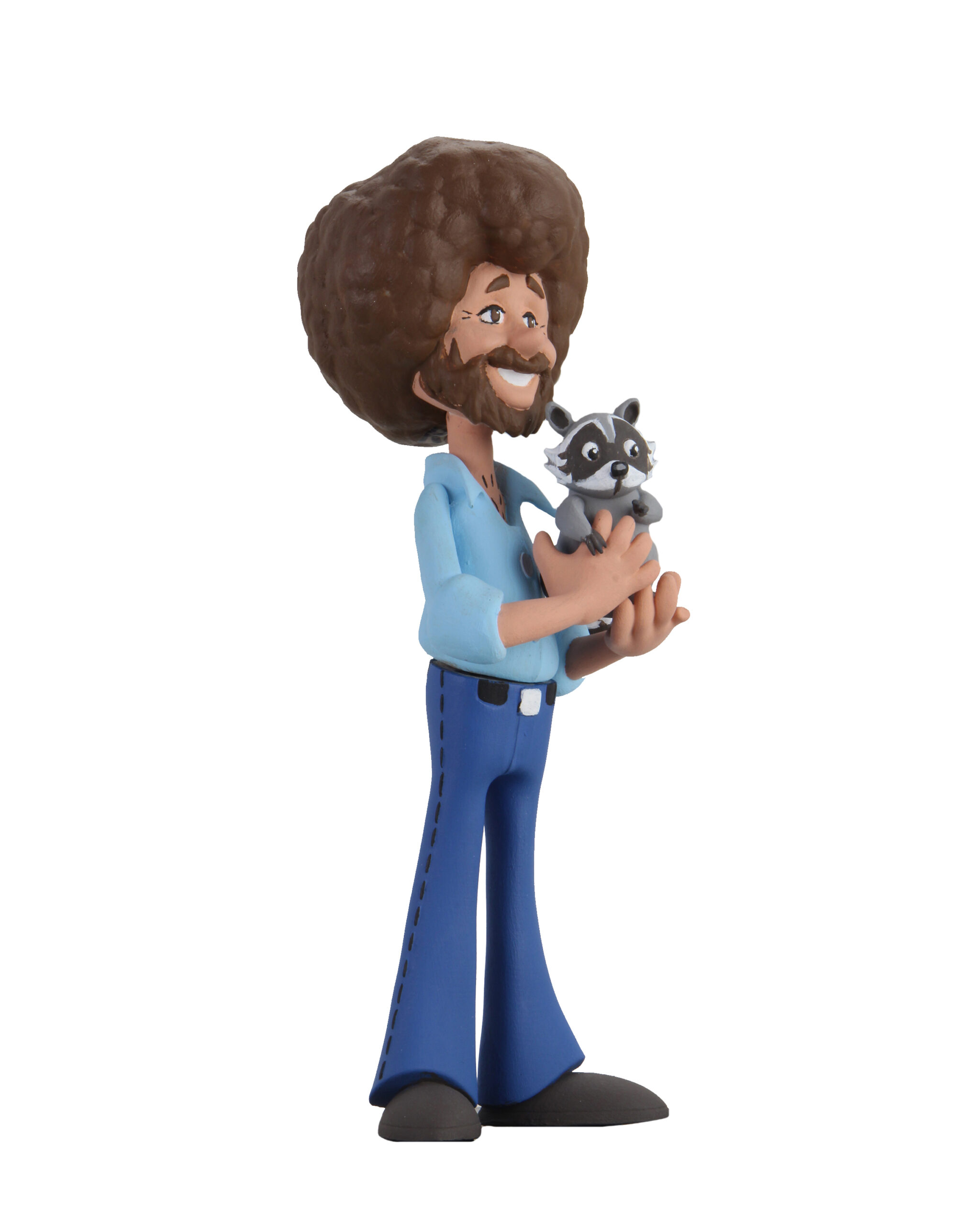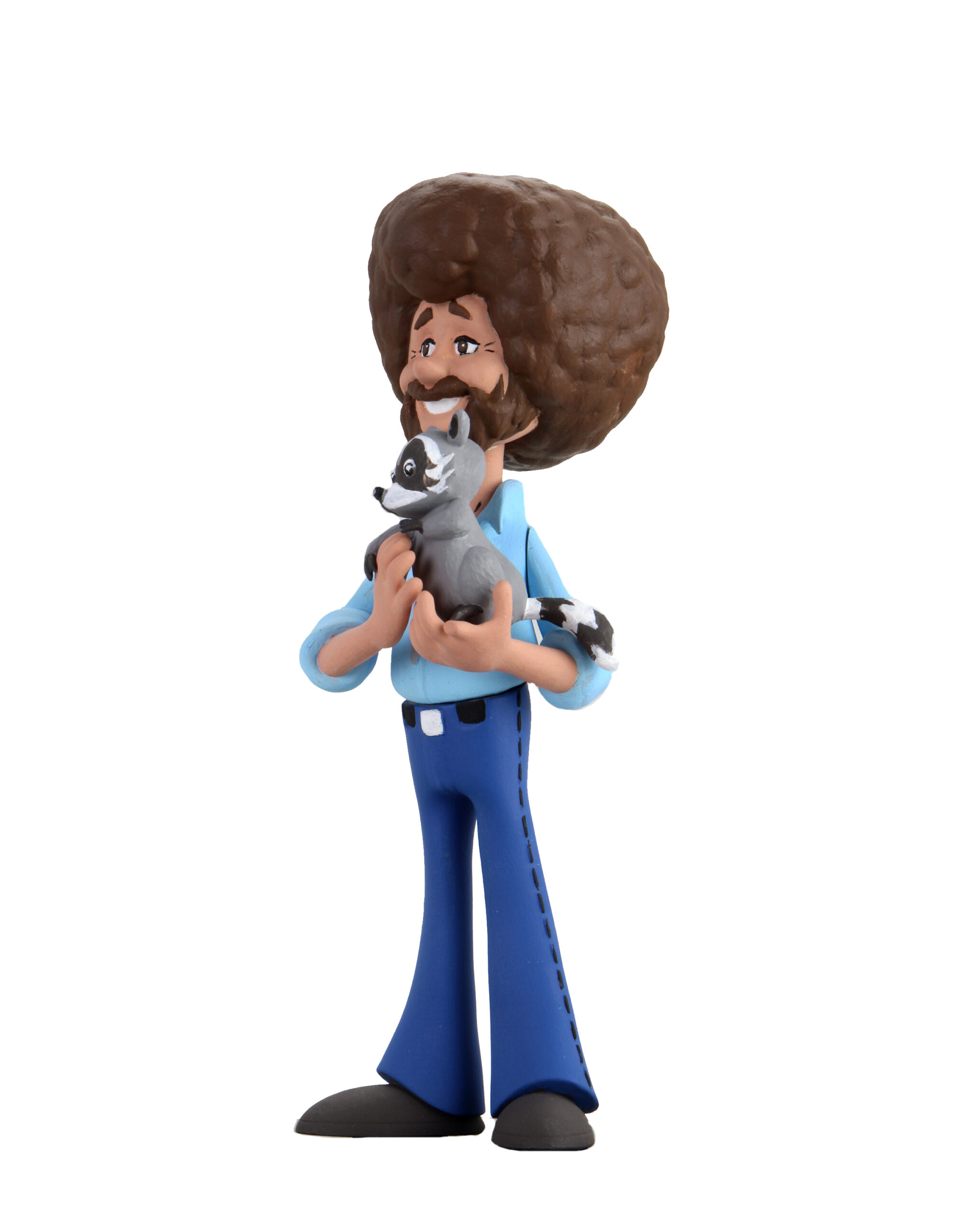 This Toony Classics action figure of world-famous “The Joy of Painting” host Bob Ross with a friendly little raccoon stands approximately 6 inches tall and is posable.
