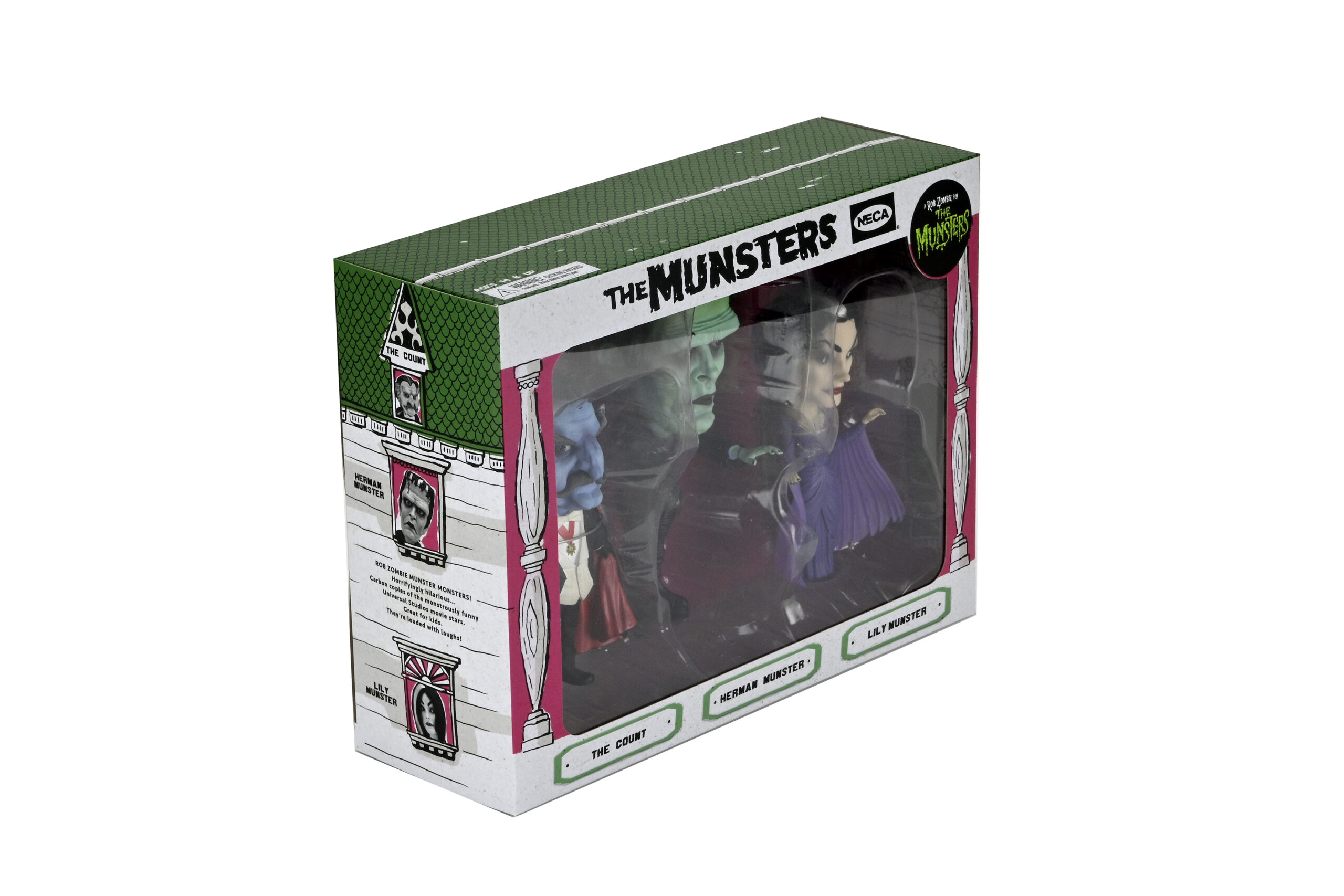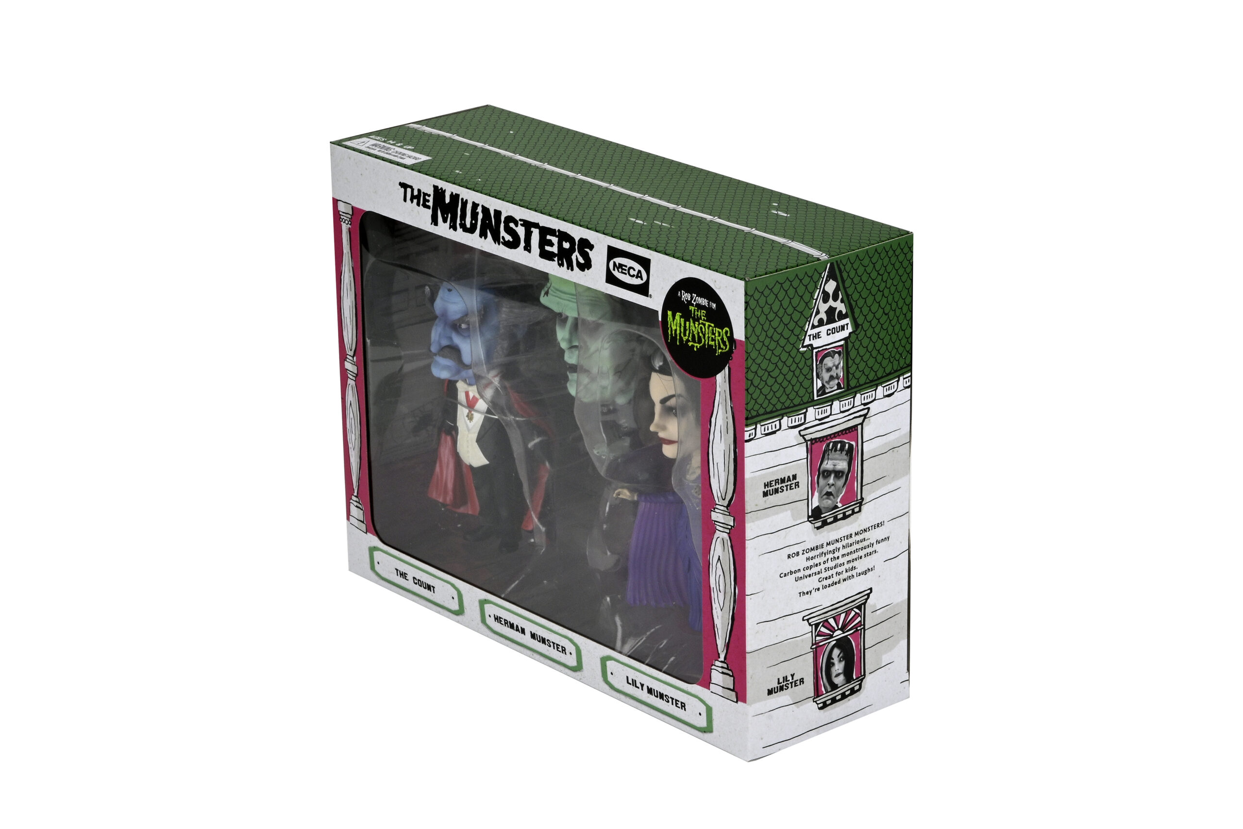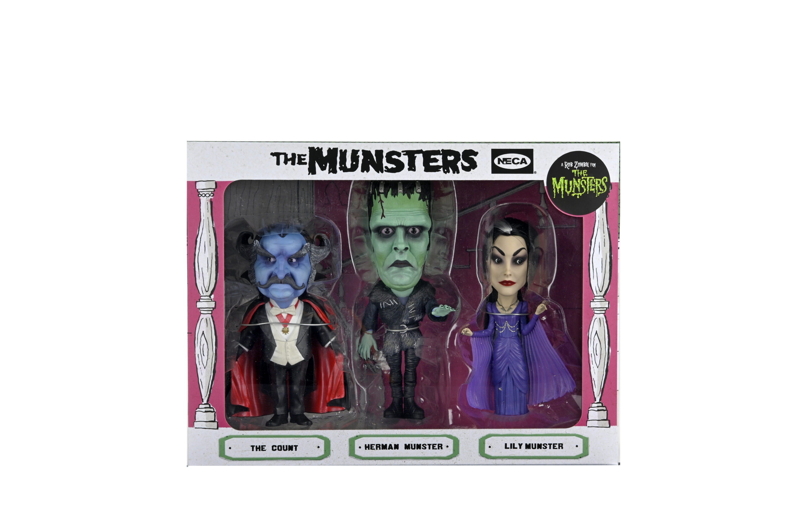 Have fun with these little Munster Monsters! From Rob Zombie’s The Munsters, this “little big head” tribute set includes Herman, Lily, and The Count, each measuring between 5 and 6 inches tall. Comes in window box packaging that is an homage to the classic 1960s toy appearances.