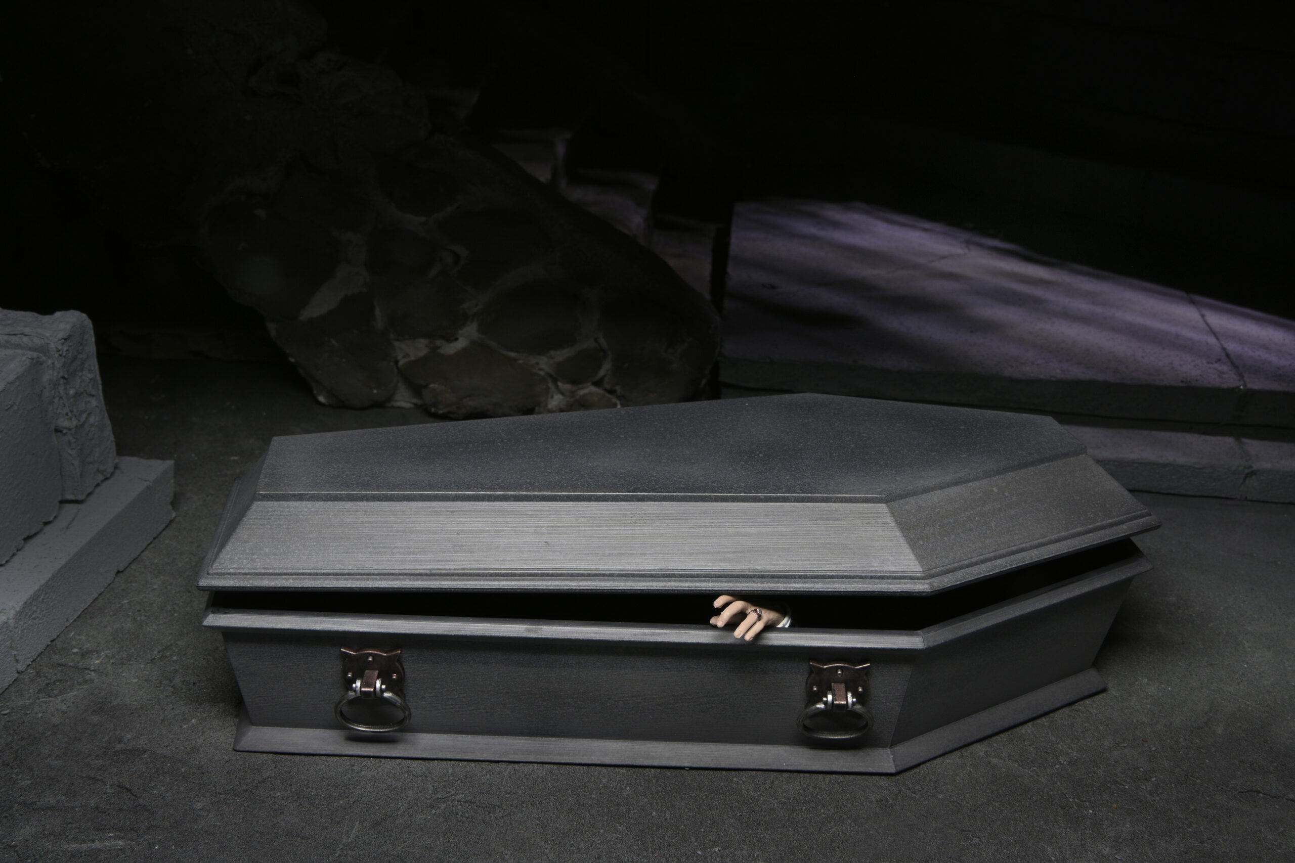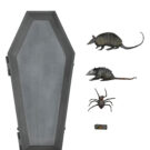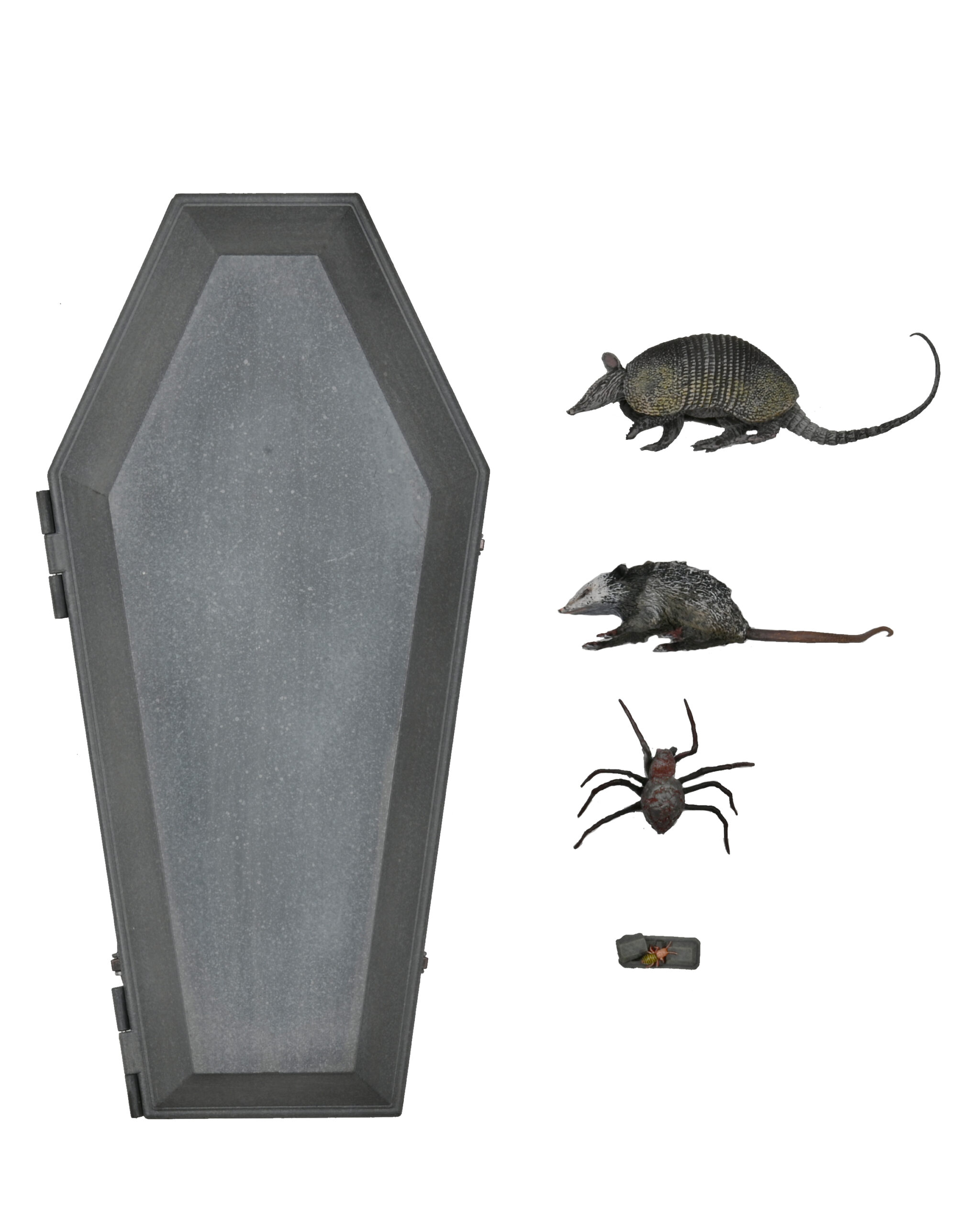 Build even bigger scenes and dioramas with this accessory set for NECA’s Universal Monsters Dracula action figure! The centerpiece of the set is the large coffin, which measures almost 9” inches long and opens to fit your Dracula figure inside (figure sold separately). The set also includes armadillo, large spider, cricket in coffin, and opossum accessories. Closed box packaging.