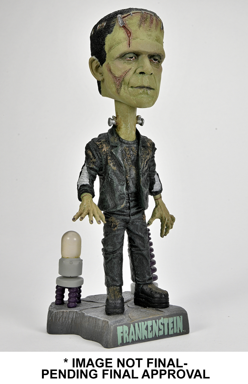 Your favorite silver screen Universal Monsters are now available as Head Knockers! Carefully sculpted and vibrantly colored, these classic ghouls are a welcome addition to any horror hound’s collection. This hand-painted resin bobble head from Frankenstein stands 8″ inches tall and is waiting to adorn your shelf. Comes in collectible packaging with spot gloss finish.