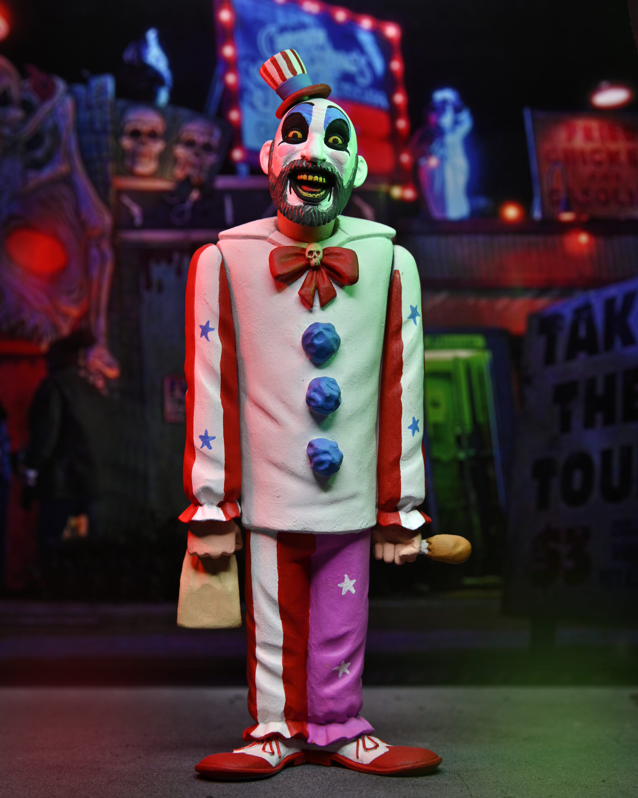 Standing approximately 6 inches tall, the Series 8 action figure assortment includes Captain Spaulding (House of 1000 Corpses) with alternate head, Vampira with skull, and Svengoolie.