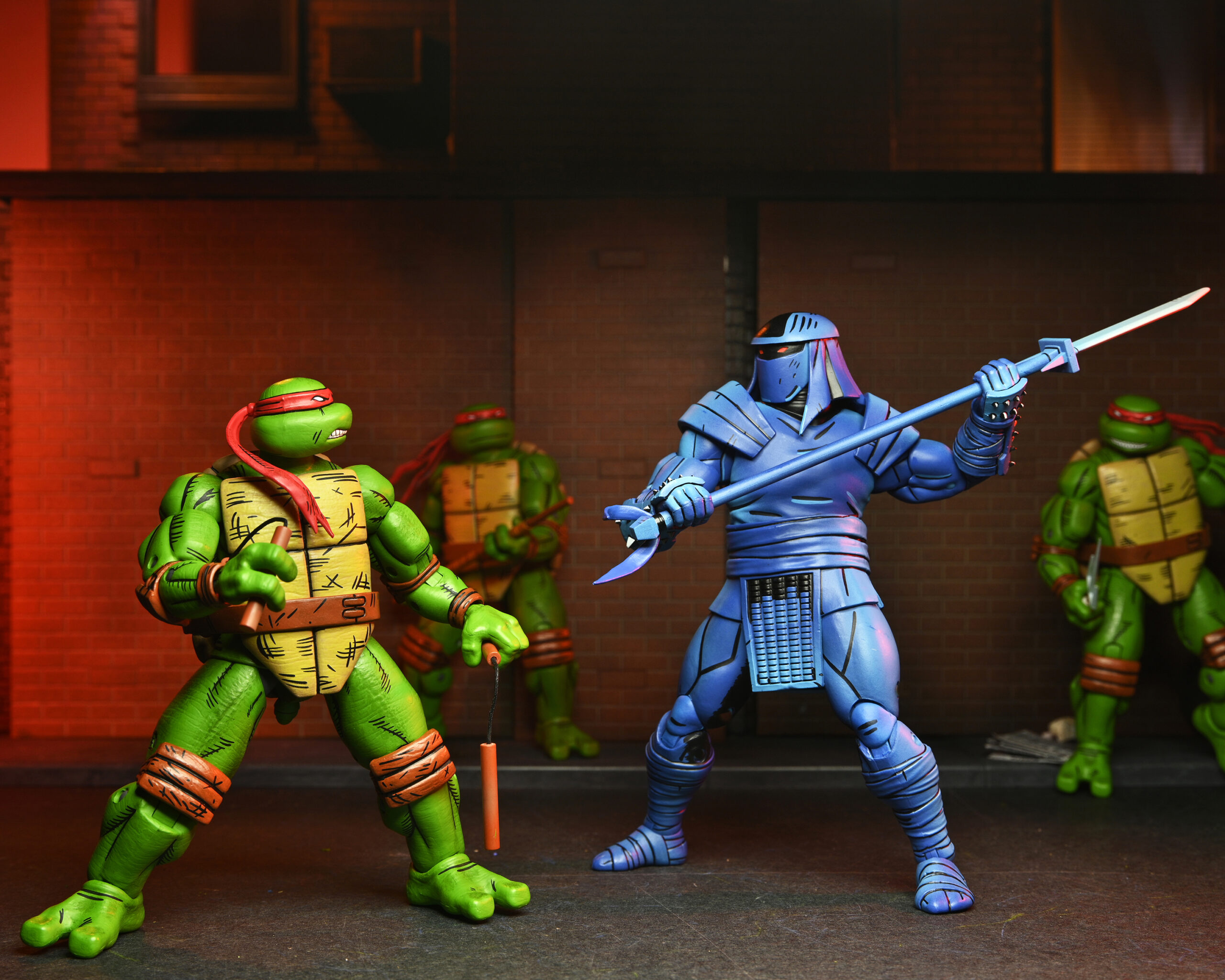 Based on the original Eastman & Laird Teenage Mutant Ninja Turtles comic books from Mirage Studios! The most skilled of the Foot Clan’s ninjas, the Enforcers are mysterious and menacing. These well-armed warriors form the Shredder’s inner guard and carry out his most lethal orders. This Foot Enforcer action figure stands approximately 7″ tall and includes three-section staff, ninjato, butterfly sword, naginata and 4 sets of interchangeable hands! Comes in special comic-book themed window box packaging illustrated by Kevin Eastman.