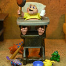 The Sinclairs are your average family with one BIG difference… they’re talking dinosaurs living in the year 60,000,003 BC! Jim Henson’s creatures for Dinosaurs made this early 1990s show a comedy hit that’s still certifiably fresh. Now you can bring home a little bit of the prehistoric with NECA’s detailed action figures. This fully articulated Baby Sinclair action figure is absolutely packed with accessories: includes highchair, bowl, spoon, baby bottle, golden horn, TV remote, baseball bat, caveman cookie, frying pan, cookie creature, stuffed dinosaur toys, slingshot, George the Hippo, and interchangeable head and hands. Stands in 7” scale (actual measurement 4 inches). Collector-friendly window box packaging with opening front flap.