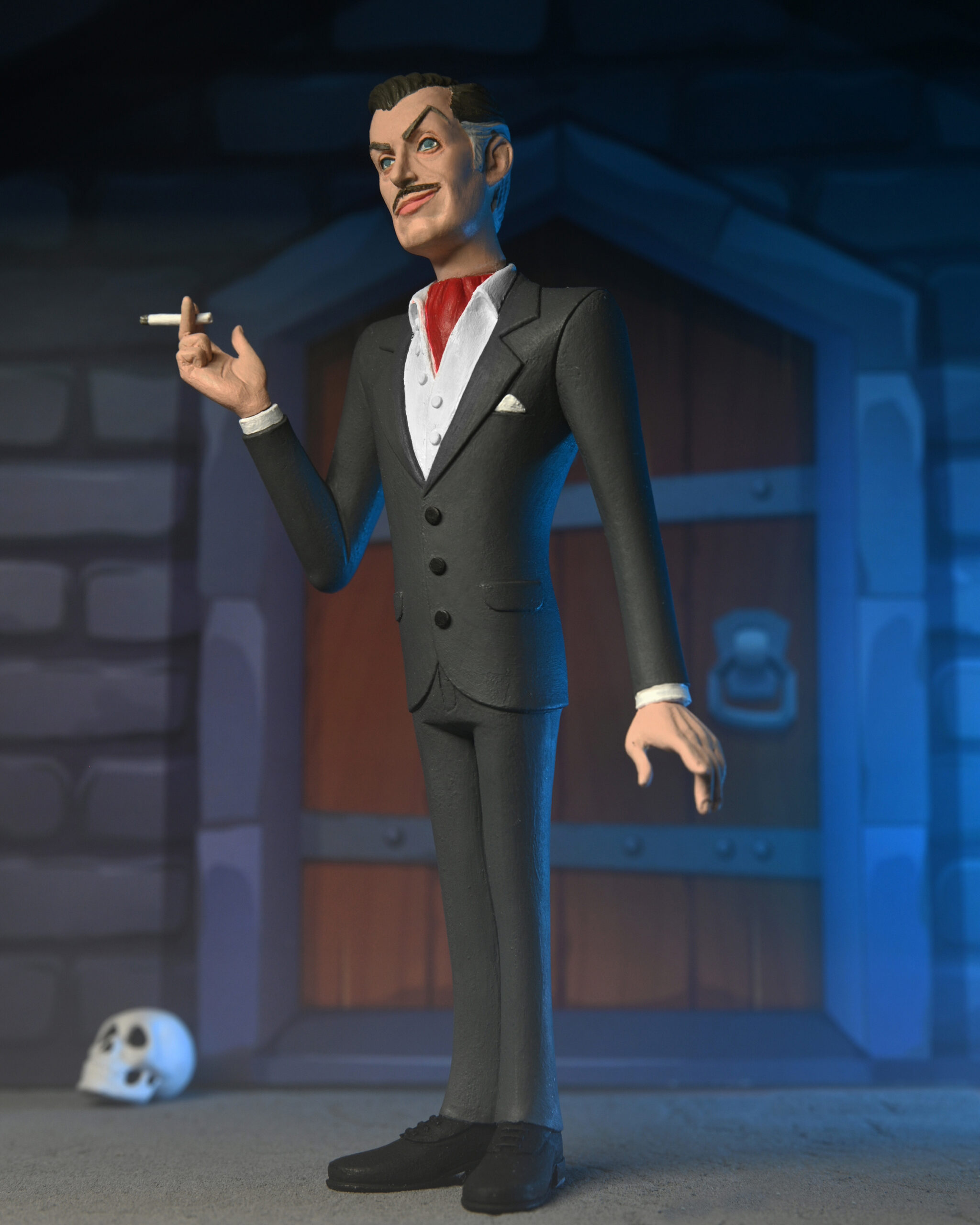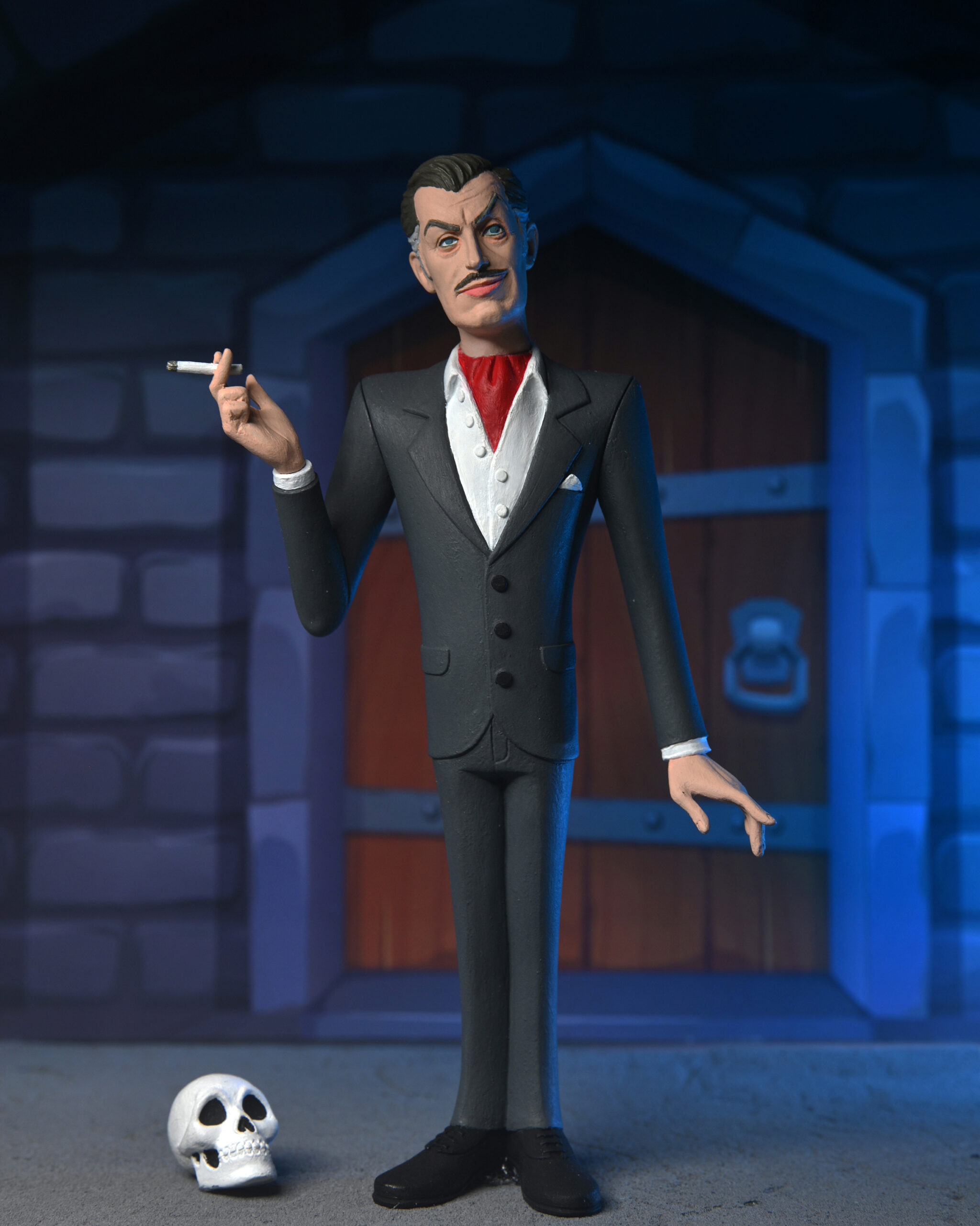 Bring the fun of Saturday morning cartoons to your horror collection with the adorable little creeps of Toony Terrors, NECA’s line of stylized horror icons! Standing approximately 6 inches tall, the Series 9 action figure assortment includes the iconic The Fiend (mascot of The Misfits) with candelabra and potion bottle, Vincent Price with cat and skull accessories, Tarman (Return of the Living Dead), and M3GAN with paper cutter sword. Each comes in blister card packaging with a bonus cutout backdrop.