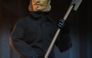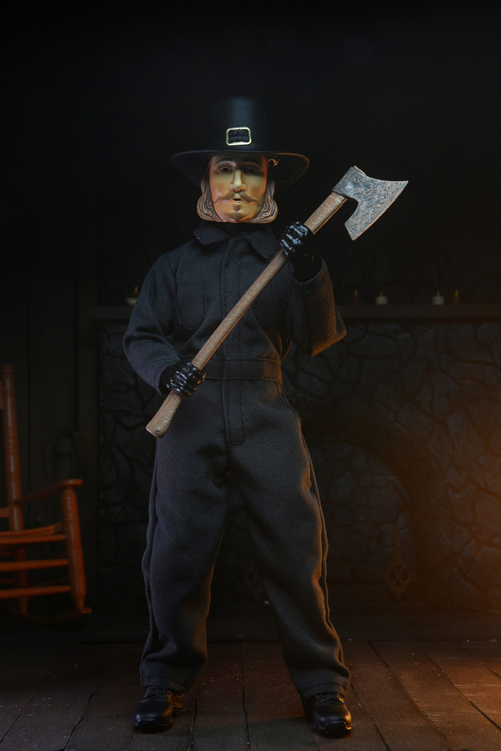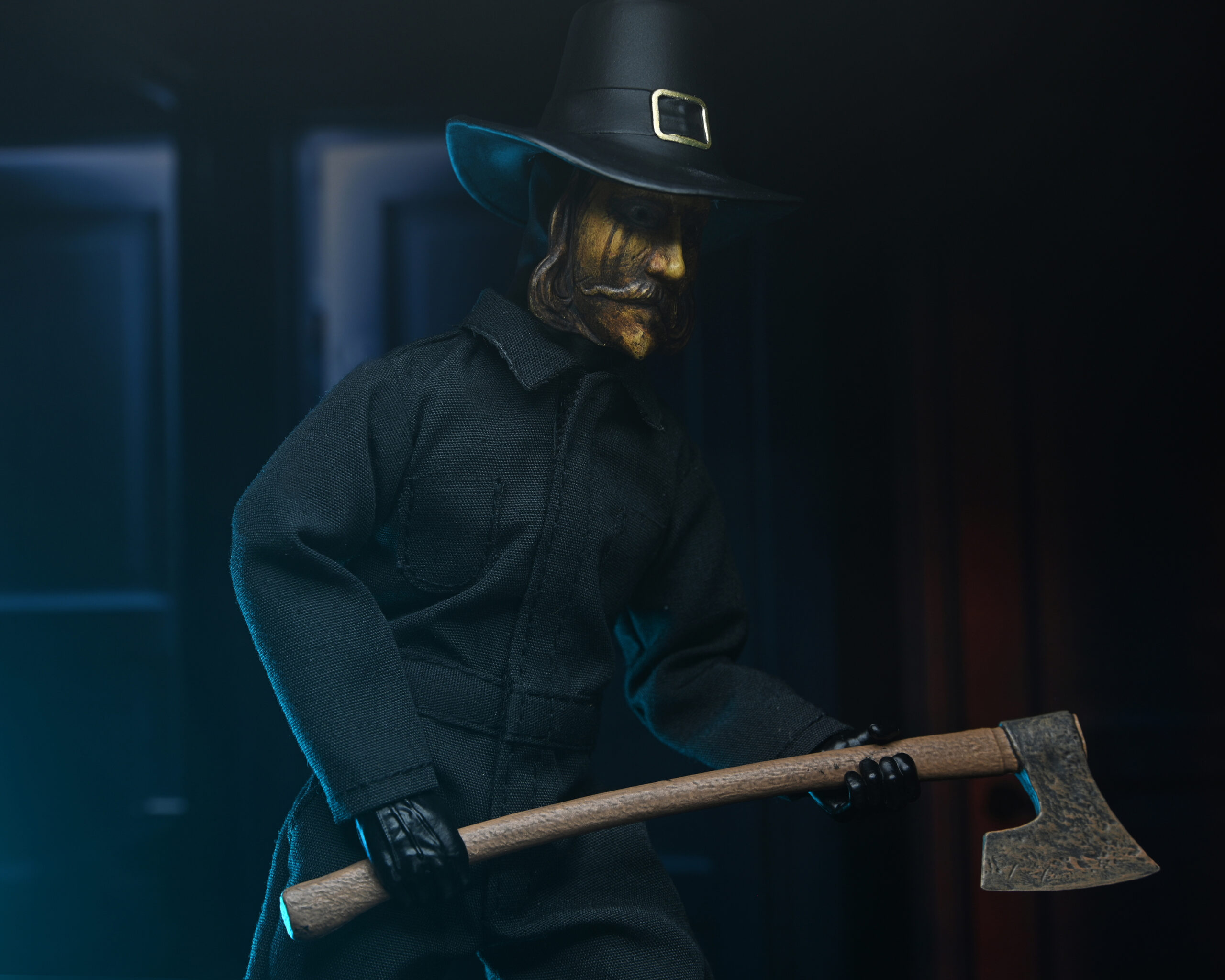 This year… There will be no leftovers. A masked killer terrorizes Plymouth, Massachusetts in Thanksgiving, the Eli Roth-directed horror flick that originated from a trailer in the film Grindhouse. This 8-inch Thanksgiving John Carver action figure is fully articulated and features tailored fabric jumpsuit, two interchangeable masks, removable hat, axe, meat tenderizer, and knife. Comes in window box packaging.